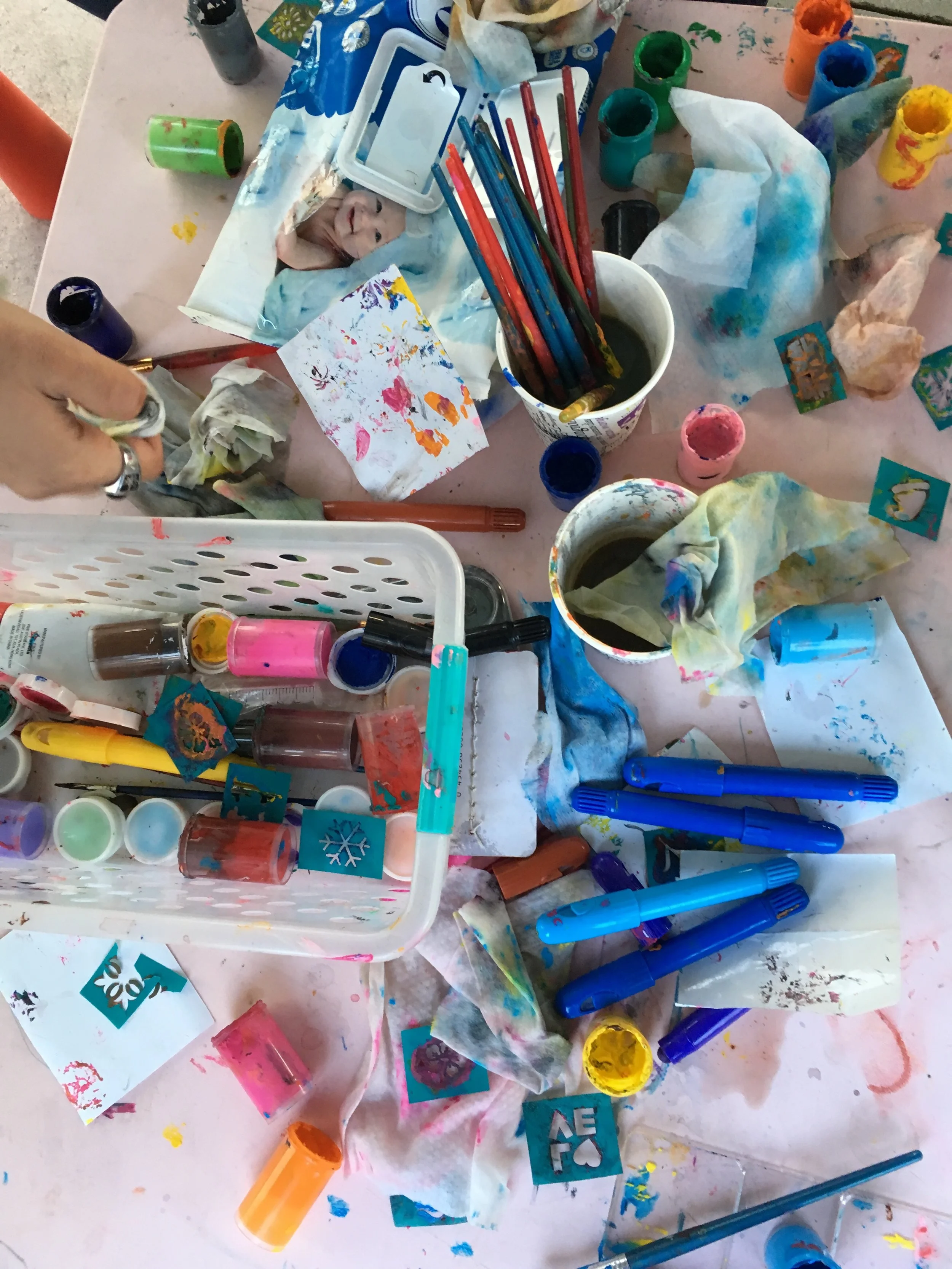 Så er det tid for ansiktsmaling. Ungene stiller i lange køer foran hver av oss som sitter med slitne malerskrin og liten kompetanse på å omskape barna til Batman, pusekatter og tigre.