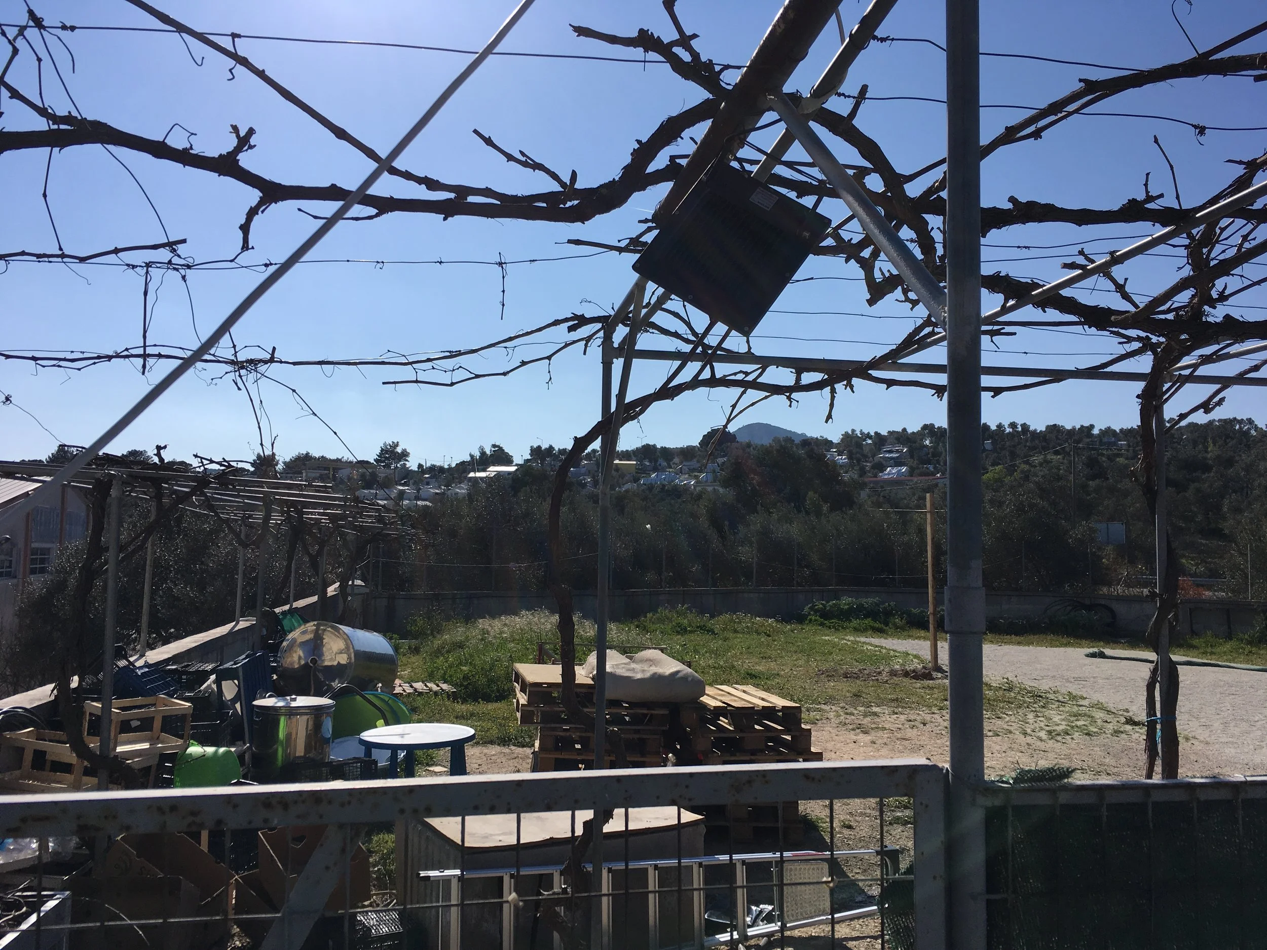 I bakken ned fra leiren sitter alltid dem vi kaller «the locals» - lokalbefolkningen i landsbyen tett ved, som protesterer mot leiren. De har sperret adkomsten til leiren når nye containere, som fungerer som boliger, skal bli kjørt fram. De har bedrevet hærverk på vogner og gjenstander som tilhører frivillige grupper.  Noen ganger roper de skjellsord og hytter med nevene når vi passerer med gjestene våre.